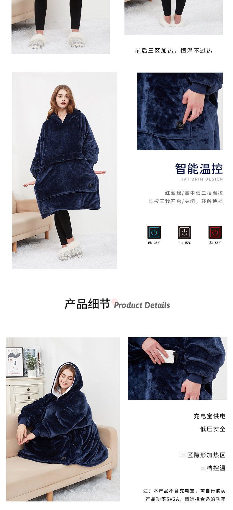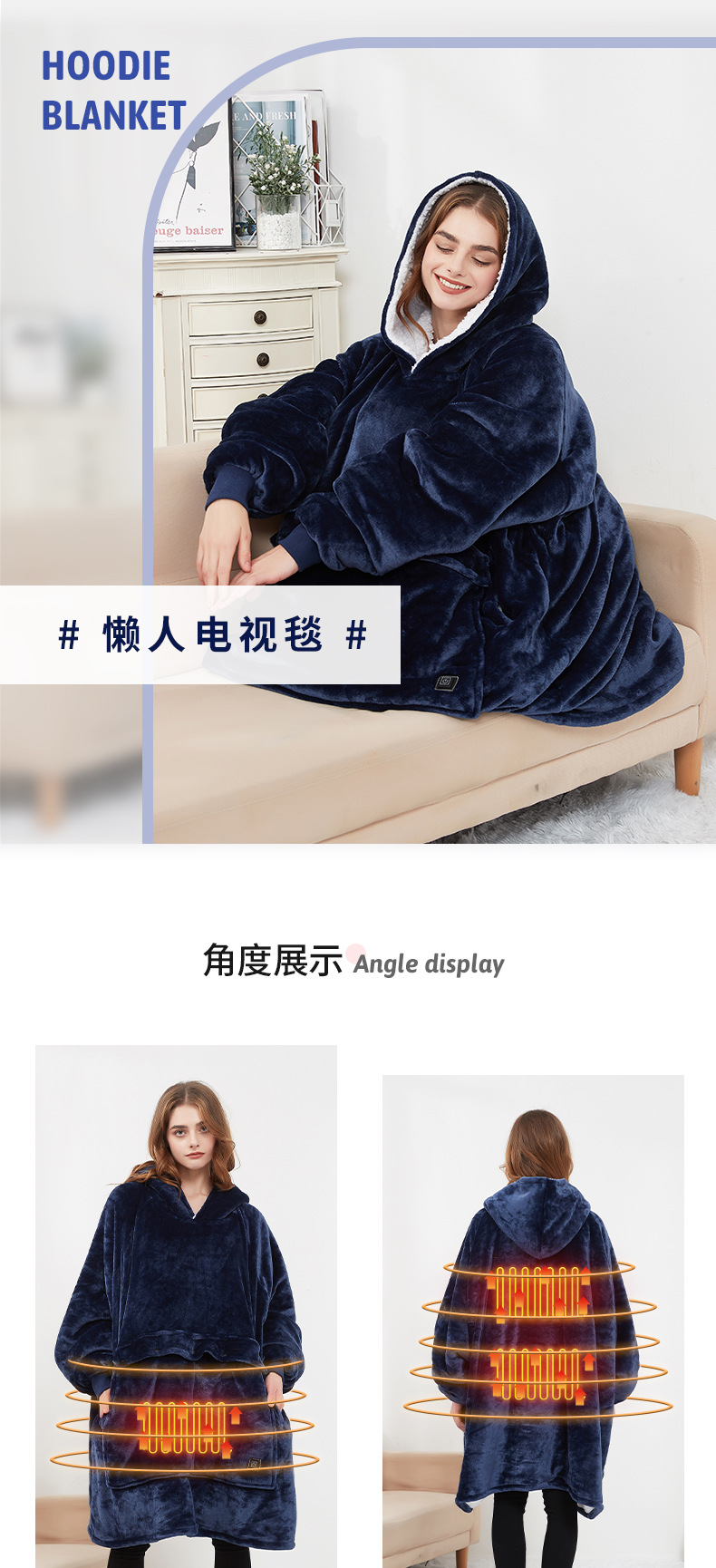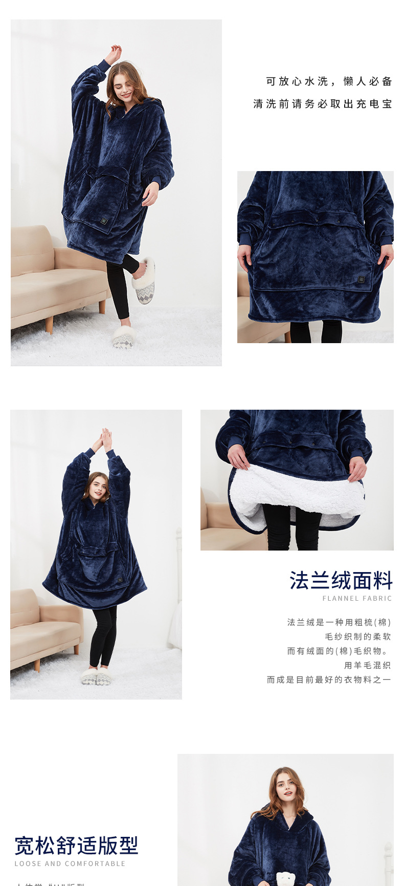 Couple Lazy Pajamas Hoodie Outdoor USB Heating Blanket Hooded Lazy Blanket Flannel Double Thickened