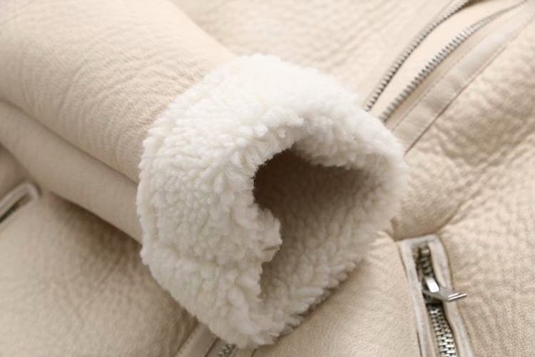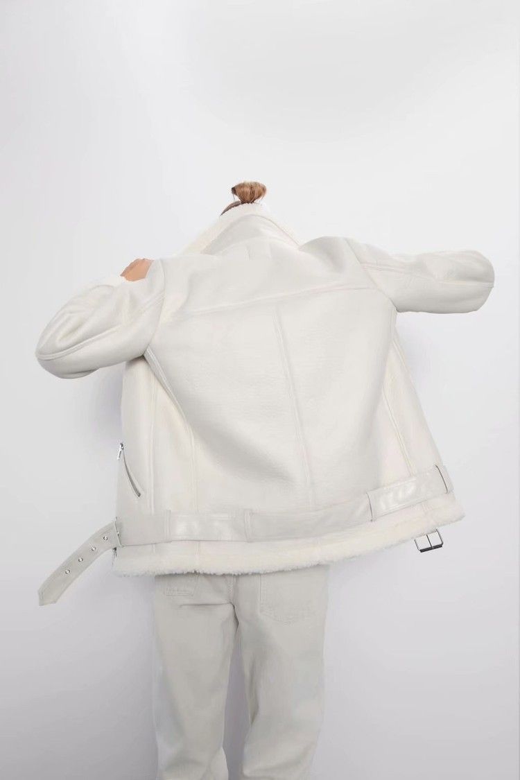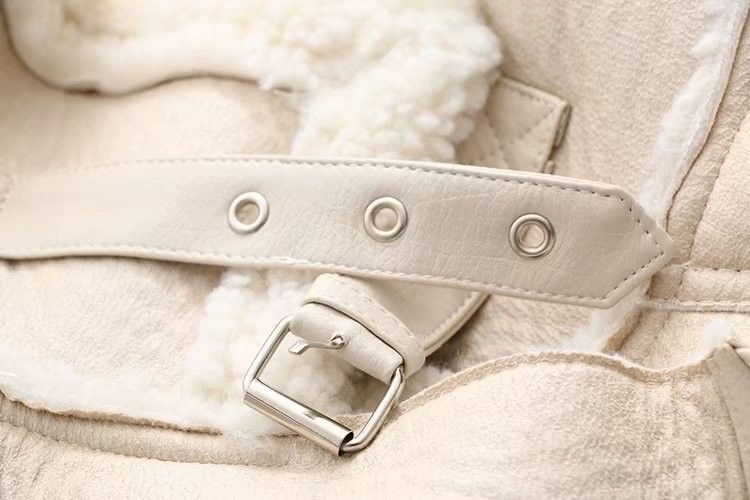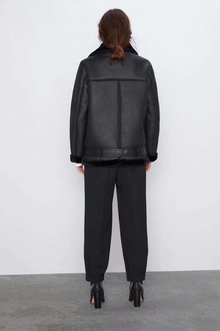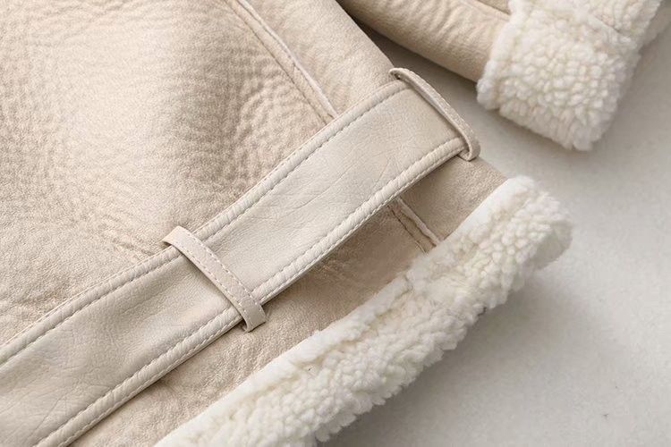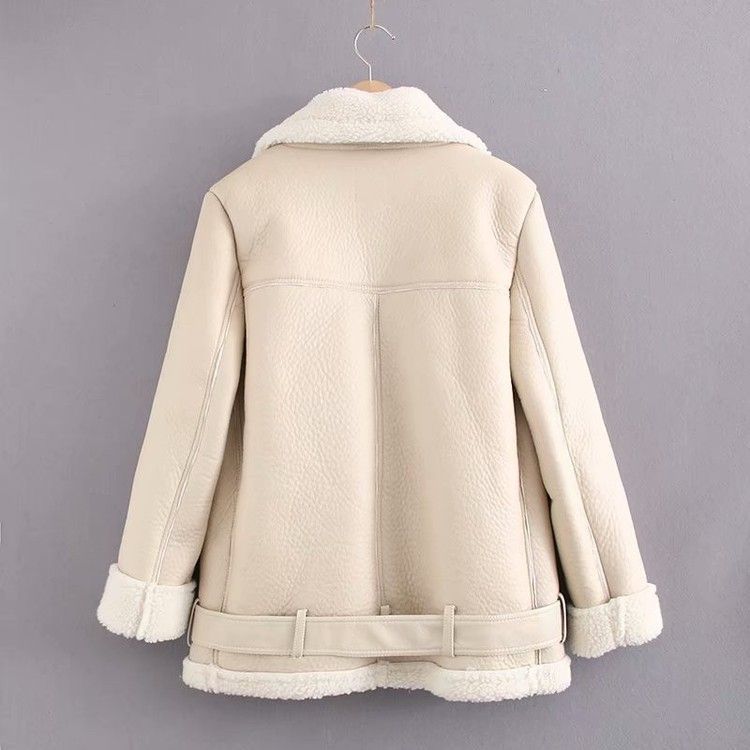 Winter Fashion Fur-Lined Thickened Lapel Long-Sleeve Diagonal Zipper Belt Women's Leather Jacket